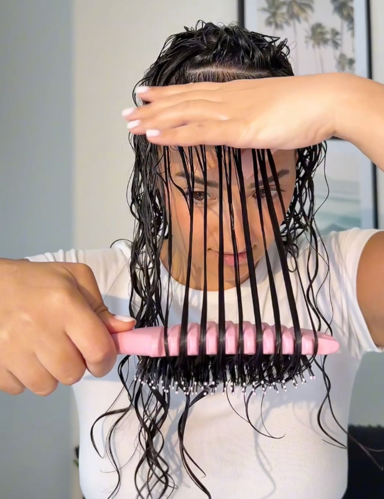 ➡️ This ensures every strand is coated, hydrated, and able to clump naturally, which enhances curl definition and shine.
